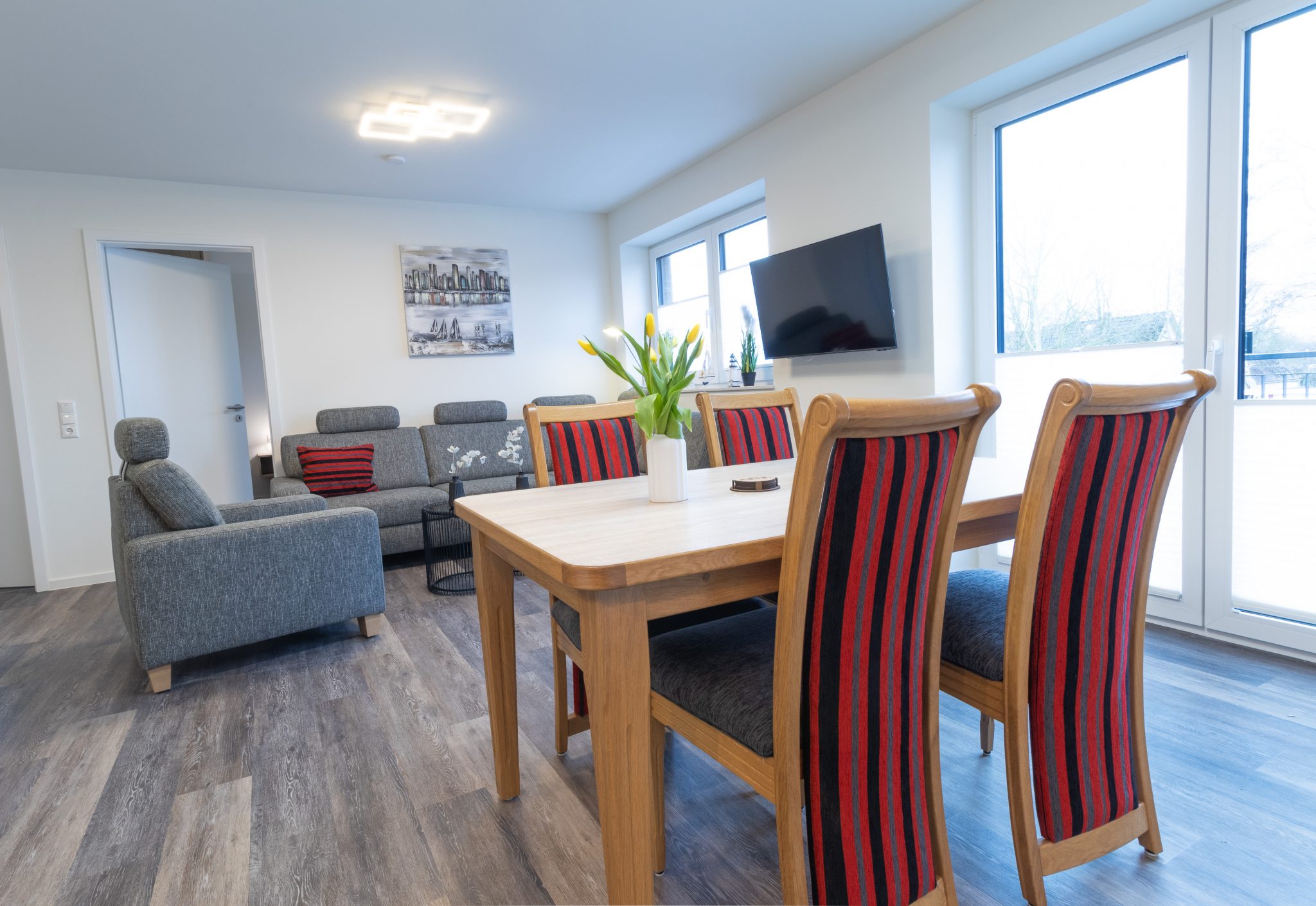 Verbringen Sie gemeinsame Mahlzeiten und Spieleabende am geräumigen Esstisch. Dies ist der ideale Platz für wertvolle Momente mit Familie und Freunden.